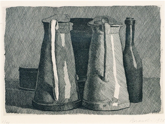 乔治·莫兰迪 有五个物体的静物 14×19.9cm 蚀刻版画 1956年